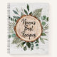 Mantenga cerca las recetas familiares más preciadas con nuestro Organizador de Libro de Recetas de Madera Rústica. Con una ilustración de acuarela de un círculo de madera rodeado por una guirnalda de follaje. Personalízalo para el Día de los Abuelos, el Día de la Madre y más con texto editable
