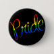Este increíble botón/pin del Orgullo Gay está en un moderno tipo de letra de guión en los colores de la bandera del orgullo gay en negro. Ponlo en tu chaqueta, mochila o cartera. ¡Se verá genial!