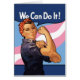Una imagen vintage clásica de Rosie el riveter con una bandera del orgullo transgénero al fondo.