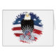 El águila orgullosa de EE.UU. se sitúa frente a las estrellas y rayas de la bandera estadounidense con texto plateado de EE.UU. Este es un diseño patriótico que puedes estar orgulloso de usar.