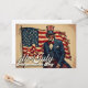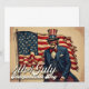 Una figura alocada pero orgullosa se para delante de una bandera de los Estados Unidos destrozada: su presencia es un tributo al espíritu perdurable de libertad, resiliencia y el sueño americano. Esta imagen captura la esencia del Día de la Independencia con dignidad poética y fuerza patriótica.