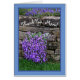 La tarjeta de la madre de esta bonito contiene flores moradas delgadas que crecen de crevicios en la pared de piedra. Otras flores moradas crecen sobre la pared baja de piedra. Texto frontal: "Gracias, mamá". El texto interno habla de estar agradecida por todo lo que mamá hace y de cómo es la clase de persona que siempre estás orgullosa de presentar como "MI mamá". El texto es personalizable. Eliminar, cambiar: su elección.