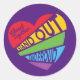 Un hermoso y colorido pegatina del orgullo LGBTQ con un ilustracion de corazón arco iris con la cita "Vibrante juntos - Stand Out, Stand Orgulloso". Con este pegatina de la conciencia del orgullo, puedes difundir algo de igualdad y mostrar al mundo que eres un orgulloso miembro de la comunidad LGBTQ.