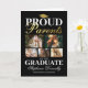 Tarjeta de felicitación que incluye un mortero académico, 5 fotos de tu hijo, el dicho "padres orgullosos del graduado", su nombre, lugar de estudio y año de clase.