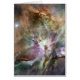 An absolutely stunning cosmological image of the Orion Nebula, a composite of images from the Hubble and Spitzer Space Telescopes, resulting in a space rainbow of gorgeous pastel colors.