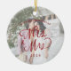 Nuestra primera Navidad como adorno de fotos de la Sra. y la Sra. tiene letras a mano, fecha personalizada y hasta dos fotos de los recién casados felices. Este adorno serviría como un regalo sincero para la pareja recién casada o como un bello recuerdo en tu propio árbol.