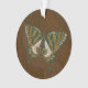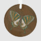 Los puntos ocre, negro, blanco y verde crean patrones ondulados y acentúan los puntos de esta mariposa de cola tortuosa, inspirada en el arte puntiagudo tradicional de la población aborigen de Australia.