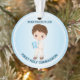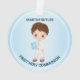El adorno acrílico está diseñado con un lindo niño morena sosteniendo la biblia. Este adorno es ideal para la primera comunión sagrada del niño. Puede conservar la redacción o cambiarla a su propio texto haciendo clic en la opción PERSONALIZAR.