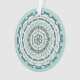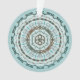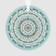 Este diseño de mandala presenta capas de motivos blancos, turquesa y marrones inspirados en las tejas celtas y los médndi indios, como las viñas, las cintas y las flores de loto.