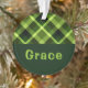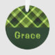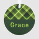 Un adorno de árbol de Navidad acrílico de círculo monogramado con un hermoso diseño de patrones diagonales de manchas en verde guisante. Cree el regalo personalizado perfecto haciendo clic en el botón "personalizado" para agregar un nombre o mensaje de personalizado en el campo de plantilla proporcionado. Seleccione el vínculo "hacer clic en más personalizar" para cambiar el tipo de letra, el tamaño del texto y más.