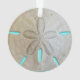 Dólar de arena natural de árbol de Navidad con fecha de año. El fondo azul acuático brillante se ve a través del agujero de la cerradura y los agujeros del dólar. El año se puede añadir a un lado y también es azul acuático, con un aspecto de sombra. Este es un dólar de arena seca, que se encuentra en una playa de Florida, y muestra sus pequeñas imperfecciones. Perfecta adición a un árbol costero de vacaciones.