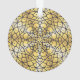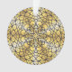 Una mandala de color azul oscuro con estrellas azules y doradas brillantes y un círculo de gradientes de rayos solares brillantes detrás hace que sea divertida y de diseño que recuerda un cielo nocturno y un día soleado con una imagen.