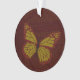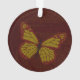 Patrones inspirados en la decoración tradicional china adornan las alas, el cuerpo y los puntos de esta mariposa monarca en tonos rojos, dorados y marrones.