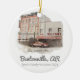El museo de Bentonville Walmart acuarela ornamento personalizado con nombre familiar en frente bajo la acuarela de la primera imagen de Walmart y familia en la parte trasera. Manejo perfecto.