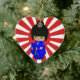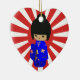 Dé la muñeca linda exhausta del kokeshi en vestido de flores azul en un fondo rojo y blanco del sol naciente. Completamente adaptable en la parte posterior con su propio mensaje personal para hacer un regalo verdaderamente único. Gran idea para un regalo para cualquier amante de los diseños inspirados japoneses del kawaii o los colectores de las muñecas del kokeshi