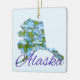 La flor estatal de Alaska se convirtió oficialmente en 1917, antes de que Alaska se convirtiera oficialmente en un estado. Así es con esta encantadora flor. Hay mucho simbolismo en la floriografía del "Olvídate de mí no": el amor verdadero y eterno; el recuerdo cuando se separan de los seres queridos o incluso después de la muerte; una conexión visceral que dura a través del tiempo; y la fidelidad y lealtad en una relación, a pesar de los desafíos de la separación. Simbólico de la conmemoración del Genocidio Armenio que comenzó en 1915, el Olvídate de mí también es un ícono de la Sociedad del Alzheimer, usada para crear conciencia por esta enfermedad debilitante que hace que nuestros seres queridos se olviden. Pero este diseño no es solamente un tributo a esta encantadora flor, también rinde homenaje a nuestro estado 49, Alaska. La mayoría piensa en los glaciares y en el hielo y la nieve y el frío cuando piensa en Alaska. Como casi un tercio del estado reside en el Círculo Ártico, eso es comprensible. Sin embargo, en 1915, Alaska experimentó un récord sin precedentes de 100 grados (F). Naturalmente, en 1971 experimentaron un nivel mínimo sin precedentes de -80 grados (F). Parte del terreno de Alaska es bastante montañoso. El Monte McKinley, en el interior de Alaska, es el punto más alto de Norteamérica con 20.320 sobre el nivel del mar. De hecho, diecisiete de los veinte picos más altos de los Estados Unidos están en Alaska. Cuando piensas en los volcanes, puedes (razonablemente) pensar en nuestro 50° estado, Hawaii. Sin embargo, el Monte Augustine de Alaska estalló en fecha tan reciente como 1986. Si recuerdan su historia norteamericana, saben que la compra de Alaska (a un precio de dos centavos de dólar norteamericano por acre) alguna vez se llamó "la locura de Seward" desde que el Secretario de Estado, William Seward hizo la oferta de comprarlo a Rusia. La posterior "fiebre del oro" de 1880 y el descubrimiento más reciente de lo que se cree es el mayor yacimiento petrolero de Norteamérica demuestran que la oferta de Seward no fue nada absurda. Además, la mayoría del salmón, el cangrejo, el fletán y el arenque de los Estados Unidos proceden de Alaska. Alaska es el estado más grande de los Estados Unidos y tiene más del doble del tamaño de Texas. Para poner esto en perspectiva, la distancia desde la playa de Jacksonville, Florida hasta San Diego, California es de aproximadamente 4.000 millas; Alaska tiene 2.700 millas de ancho. Dada su rica (intención de juego de palabras) historia, puede sorprenderte saber que el lema del estado para Alaska es "Norte al Futuro". Este encantador diseño, que celebra la incorporación número 49 a los Estados Unidos, ofrece un esquema del estado de Alaska, lleno de su flor estatal, el salvaje y alpino nomeolvides. Este bonito diseño está dominado por el "ALASKA" morado en este impresionante adorno. Ya sea que esté decorando un árbol de vacaciones con recuerdos de sus viajes o rindiendo homenaje a nuestro estado 49, este maravilloso ornamento es una excelente elección.