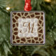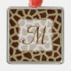 Ornamento salvaje del navidad de la inicial del monograma de la piel de la tela de la selva del parque zoológico del safari del gato del estampado de animales del punto de la jirafa personalizado