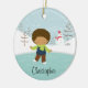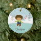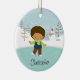 Anticuado y personalizó el sistema patinador del ornamento del navidad del pelo de hielo del muchacho afroamericano marrón lindo del patinador en un fondo llenado nieve con árboles y un muñeco de nieve. Un regalo del navidad de la maravilla seguro que se atesorará durante muchos años para venir.
