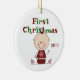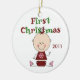Una figura adorable chica y el texto rojo y verde del palillo del bebé que lee el "primer navidad" en un ornamento usted puede cambiar el año encendido. ¡Hace un gran 1r regalo del navidad para la niña que usted conoce!