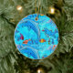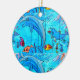 ornamento azul de delfines riéndose