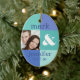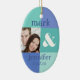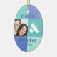 Ornamento de la diversión con un diseño de bloque azul moderno del color. Añada su propia foto y modifique el texto para requisitos particulares con los nombres de novia y del novio y la fecha del boda o lo que usted tiene gusto. Perfeccione el recuerdo para el primer navidad de un recién casado. ¡Original de PinkInkArt!