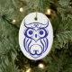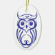 Este ornamento ofrece un búho azul en un ornamento blanco; inspirado por el sauce azul China.