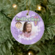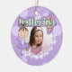 Ballerina photo keepsake ornamé incluye una adorable bailarina con una figura de palo en un lienzo morado, un área en la que puedes añadir el texto que elijas, y puedes añadir tu foto favorita antes de pedir.