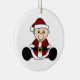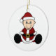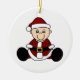 Un bebé vestido en un casquillo del juego y de media de Santa en un ornamento que usted puede modificar para requisitos particulares fácilmente con su propio texto antes de ordenar.