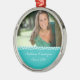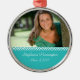 Este ornamento redondo superior de la foto de la graduación tiene una frontera elegante del diseño del zigzag del azul y del blanco de aquamarine entre una foto adaptable en el top y su texto en la parte inferior.