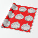 Ornamento blanco sobre papel de envolver rojo