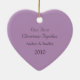 Primera Navidad juntos boda ornamento con texto de personalizable en la parte de atrás. Es fácil personalizar esto con tus propios nombres y el año de tu primera Navidad juntos en pareja. Diseño de vid morada de lavanda y berenjenas.