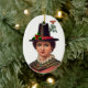 Ofrecen a un chica precioso con los ojos que encantan, una puntilla Galés del acebo en su gorra, colocándose debajo de un muérdago, en este ornamento elegante. En el revés, la inscripción lee, "besa a un chica Galés debajo de un muérdago; sonrisa para siempre." Esto está apenas a la derecha para su árbol de navidad o decoraciones festivas del sitio.