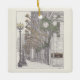 Las vacaciones en la tienda Ornament Marshall Field del Departamento de Tiendas de Field son recordadas cariñosamente en Chicago como una fina tienda con mercadería de calidad, así como sus infames relojes en cada esquina que encendieron la frase "Reúnete con mí bajo el reloj en el campo". El propio Marshall Field era conocido por su servicio al cliente experto y acuñó la frase "¡Dale a la dama lo que ella quiere!". Creé este ilustracion con una técnica de "pezón" B&W con tonos de acuarela añadidos. Es mi ilustracion más popular. Espero que traiga de vuelta a muchos recuerdos aficionados de compras allí con su madre, abuela o familia y amigos.