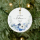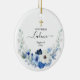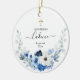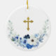Ornamento cerámico bautizado con flor azul y blanco chica