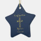 Moderna confirmación de estrella de nombre cruzado dorado adorno con fondo azul. Personaliza con tu nombre y fecha.
