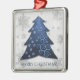 Decoren su árbol de Navidad esta temporada navideña con un adorno navideño navideño azul. El diseño ornamental incluye un vibrante y festivo árbol de Navidad adornado con caídas de copos de nieve grises y blancos con un saludo de vacaciones. También hay artículos de regalo y de vacaciones disponibles con este diseño.
