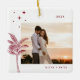 Palmeras y estrellas bohemias de playa, adorno de fotos de vacaciones en rojo festivo.