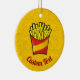ilustracion personalizado de un pequeño paquete de patatas fritas. Iconos de contorno de comida basura fondo de patrón amarillo. Texto personalizado en ambos lados.