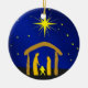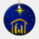 Un bonito dibujo de una escena de pesebre con un fondo azul oscuro. Este hermoso adorno es perfecto como regalo para amigos y familiares, o compre uno para usted mismo. La imagen es PERSONALIZABLE.