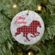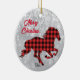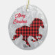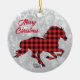 Personaliza y alegra tu árbol de Navidad con este único "uno de los tipos" Navidades de caballos rojos y negros con un adorno de cerámica! Una silueta de caballo roja y negra en un fondo gris con copos de nieve blancos. Pintura Original Bella Artes Del Artista Kerry Miller.