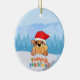 Santa Hat Puppy en un adorno de nevado. Perfecto para los amantes del perro. A los niños les encantará este adorable y colorido adorno navideño. Añadir un mensaje al fondo.
