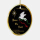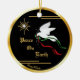 Personaliza y decora tu árbol de Navidad con este hermoso "One of a Kind" Ornamento de Navidad de la paloma blanca! Una serena paloma blanca está volando entre las estrellas llevando una rama de olivo con cintas rojas y verdes con un borde de oro... ¡Difundiendo "Paz en la Tierra"! Este es un diseño de arte original del artista Kerry Miller".