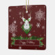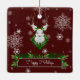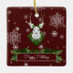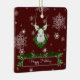 Decore su árbol esta temporada de vacaciones con un adorno de cerámica de renos rojos. El diseño ornamental incluye un reno festivo con una corona de Navidades adornada con bayas y copos de nieve que caen y una caja de saludo de vacaciones decorada con guirnaldas de vacaciones. También hay artículos de regalo y de vacaciones disponibles con este diseño.