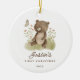 Simplemente perfecto ornamento de la Primera Navidad del bebé con una dulce acuarela de la escena del oso bebé.