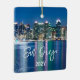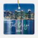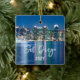 Ornamento cerámico de la Línea Skyline de San Diego: Esta es una fotografía de la silueta de San Diego tomada por la noche en octubre de 2020. Las luces de los rascacielos se reflejaban en el agua de la bahía, y la luz de la luna llena que crecía en ese momento llevaba a esos colores azules. ¡Este es el mejor adorno de San Diego para conmemorar su viaje a San Diego, California! Esta foto también está disponible en productos que hacen el recuerdo perfecto de San Diego para usted o como regalo de vacaciones.