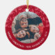 Este ornamento elegante con todo de la diversión incluye un estampado de flores en la mitad superior y un color sólido en la mitad inferior. Un mensaje del navidad más el apellido y el año se puede añadir para hacerlo en un recuerdo. Una foto de familia en el centro hace esto un pedazo único.
