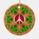 Groovy dorado signo de paz personalizable adorno cerámica en verde neón, naranja y rosado - hecho de diseño de fractales geométricos. Cada lado tiene su propia producción de energía. Hace una gran idea personalizada de regalo ~ mantener el regalo ~ decorar y colgar este positivo adorno de energía feliz en su hogar u oficina!