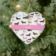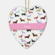 Ponga el perro casero de su familia en el árbol de navidad este año y por próximos años, con este ornamento en forma de corazón adorable del árbol de navidad. El frente tiene un fondo blanco con las porciones de pocos perros del weenie en él. Un gráfico de una cinta rosada corre a través del centro que aguarda su texto. La parte posterior tiene espacio para la fotografía de su perro. Personalice con la foto de su propio mascota querido y nombre para un ornamento maravilloso que la familia entera amará y que acariciará.