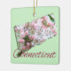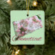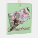 Hojas verdes y flores en forma de estrella cautivadoras, acentuadas con distintivas manchas de color burdeos; el Laurel de Montaña es uno de los arbustos florecientes más hermosos nativos de Estados Unidos. También conocido como ivybush, laurel de oveja, arbusto de calico, lambkill (porque las plantas son bastante tóxicas, especialmente para los animales pequeños), cloro y madera de cuchara (porque los nativos americanos hacían cucharas de la madera). Las flores de laurel representan ambición, éxito y fama. Aunque parecen muy similares, hay una gran diferencia entre Mountain Laurel y Bay Laurel (que se utiliza para cocinar y hacer las famosas y audibles coronas). A diferencia de Bay Laurel, prácticamente todas las partes de la Montaña Laurel son venenosas tanto para los humanos como para los animales. También la Flor Estatal de Pensilvania, Mountain Laurel ofrece una impresionante exhibición floral en mayo y junio con flores en rosa, blanco y rojo. Pero este diseño no es solamente un tributo a esta impresionante flor, también rinde homenaje a nuestro quinto estado, Connecticut. De los 50 estados, Connecticut es la 48ª más grande . ... o la tercera más pequeña de la unión. Para un estado que, TÉCNICAMENTE, no está en el océano (Long Island Bay es en realidad un estuario), Connecticut tiene una rica historia marítima y un asombroso museo marítimo en Mystic. Aunque el apodo oficial es "El Estado de la Constitución", Connecticut también se conoce como "El Estado Nutmeg", "El Estado de las Provisiones" y "La tierra de los hábitos estables". Las finanzas y los seguros son las industrias más grandes de Connecticut; tal vez no sea tan sorprendente como también el lugar de nacimiento de Charles Dow, el fundador del Wall Street Journal y Dow Jones Y J. P. Morgan, financista y filántropo. Por supuesto, también es el lugar de nacimiento, entre otros, del ex presidente George W. Bush, Katharine Hepburn, Meryl Streep y Noah Webster, como en el Diccionario de Webster. Este encantador diseño, que celebra la 5ª incorporación a los Estados Unidos, ofrece un esquema del estado de Connecticut, lleno de su flor estatal, la hermosa Mountain Laurel. Este bonito diseño está decorado con un "CONNECTICUT" rosa de coordinación en este impresionante adorno. Ya sea que esté decorando un árbol de vacaciones con recuerdos de sus viajes o rindiendo homenaje a nuestro quinto estado, este maravilloso ornamento es una excelente elección.