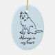 Añade el nombre de tu perro al revés de este Keepsake. Crea un recuerdo de un amigo canino muy querido. Este adorno conmemorativo del perro muestra un dibujo de tinta de un perro sentado y tiene el lema 'Siempre en nuestros corazones'. Puedes añadir el nombre de tu propio perro al revés. La decoración es de un suave tono azul.